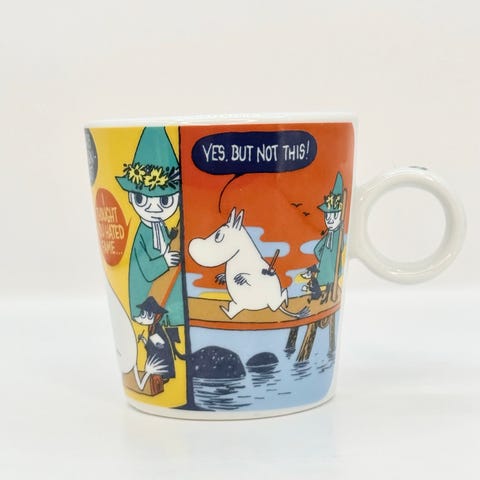 Materiaaliltaan muki on japanilaista Yamaka-posliinia ja sen koko on hieman perinteisiä Arabian muumimukeja pienempi.