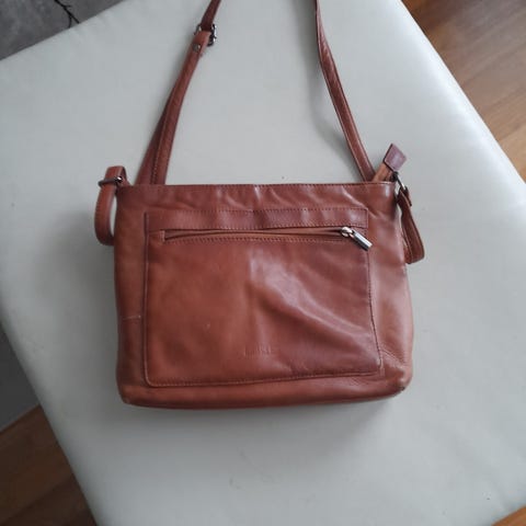 Ruskea käsilaukku, nahkaa