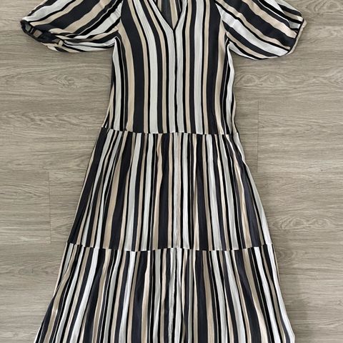 Mustavalkoraidallinen mekko. Mukana vyö.