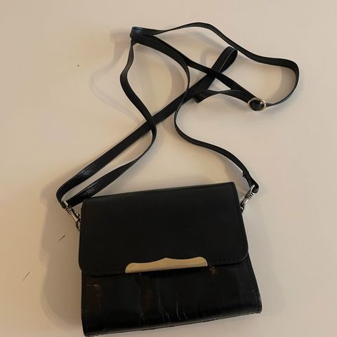 Beige laukku pitkällä olkahihnalla, koko 27x15cm.