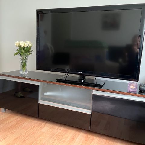 Valkoinen tv-taso tuo huoneeseen raikasta ilmettä! Tv-tasossa on kaksi kaappia, joihin saat tärkeät tavarat hyvään talteen.