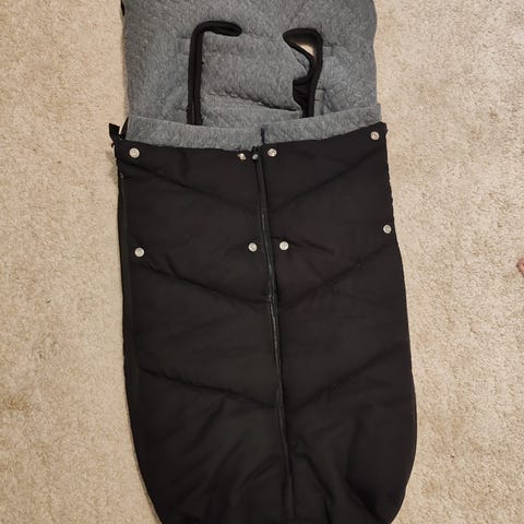 Muuten hyväkuntoinen Emma lämpöpussi rattaisiin, mutta vetoketju on mennyt rikki.