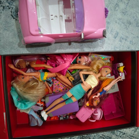 Barbie lastenlelut sisältävät kaksi nukkea ja koira joka toimii patterilla ja kävelee