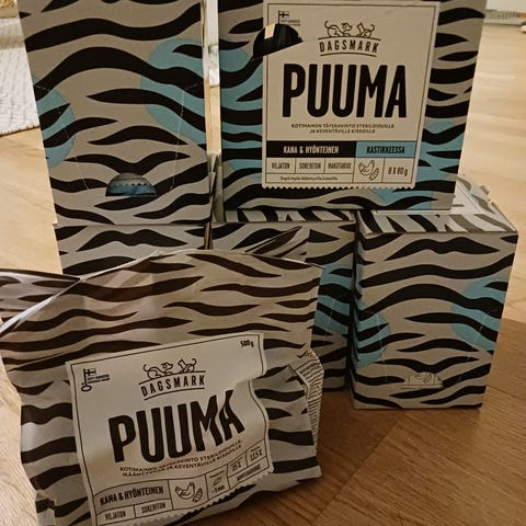 Erilaisia kissanruokia myynnissä. Zooplussalta tilattu. Omalle toiselle kissalle ei sovi allergian vuoksi.