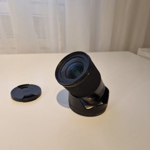 Sigman 16mm f1.4 Sonyn E mountilla. Objektiivi on tehty APS-C kameroille, mutta olen itse käyttäny fullframe kameralla. Kuviin tulee vinhetointia, mutta muuten erittäin pätevä. Mukana tulee vastavalosuoja + linssisuoja ja takatulppa.
