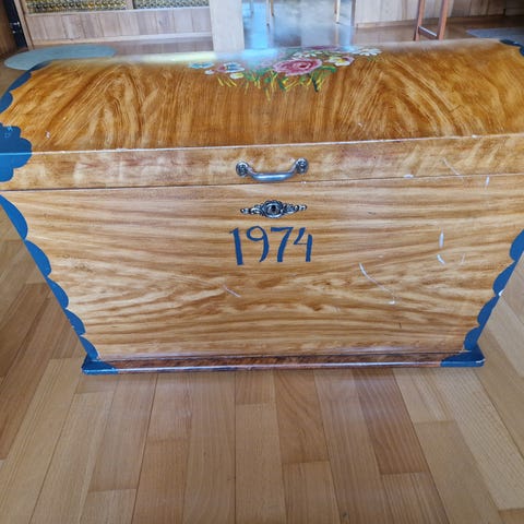 Hyväkuntoinen puuarkku (eukalyptusta) säilytykseen/sisustukseen.