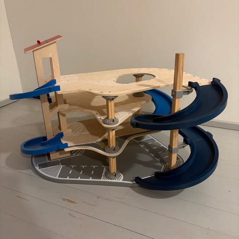 Myydään Hapen puinen parkkitalo, jossa on useita tasoja, liuku-urat, bensa-asema, autokorjaamo, hissi jne. Hyvä lahja jollekin pienelle automiehelle!