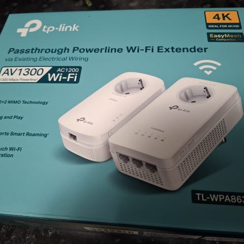 AV1000 Gigabit Powerline AC750 Wi-Fi Extender KIT, Sisältäen 1 x TL-WPA7517 ja 1 x TL-PA7017. Se tarjoaa 1000Mbps siirtonopeuden sähköverkossa 300:aan metriin, 750Mbps siirtonopeuden lanattomasti,Plug, Pair ja Play, Gigabit ethernet portti, WiFi Clone, tuki usealle IPTV Striimille. Yhteensopiva kaikkien HomePlug AV ja AV2 standardien Powerline-adapterien kanssa. Laitteessa on 128-bittinen AES-suoja, joka salaa verkkoliikenteen ulkopuolisilta.