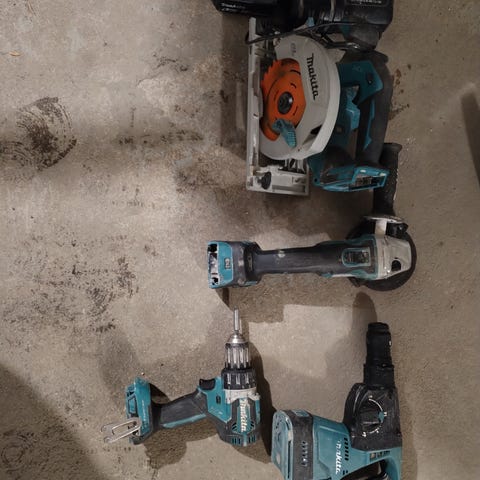(käsisirkkeli, feini ja kuviosaha) + uudet 5 akut ja laturi