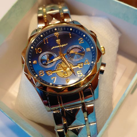Poedagar Rannekello,uusi, 36mm, Hopea,sininen
