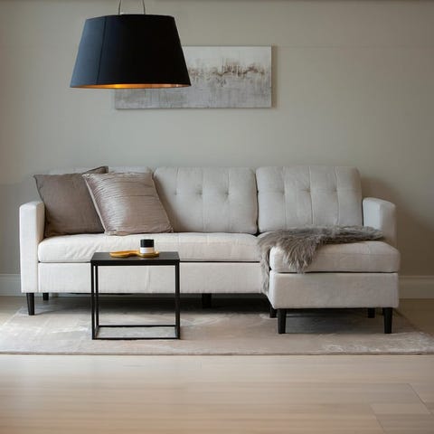 Kuvasta poiketen sohva on avokulmasohva edestä päin avokulma vasemmalla.