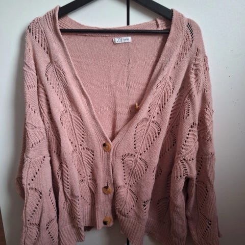 Neuletakki jossa takaosa sekä hihat neuletta .Vyö,sekä kaksi hakasta edessä.