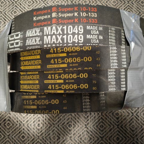 Kuvanmukaiset moottorikelkan variaattorin hihnat. Lynx, Ski-Doo ja Yamaha ym. Voin lähettää.