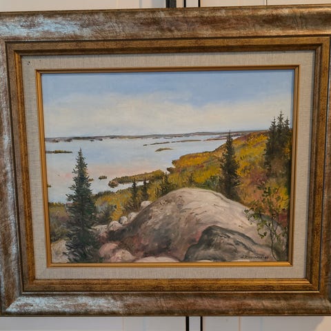 Alpo Okkosen maalaama taulu. Hyvässä kunnossa. Leveys 80cm ja pituus 61cm kehysten kanssa.
