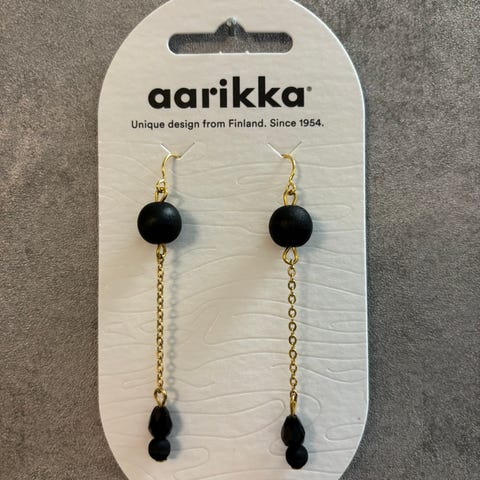 Myydään uudet Aarikan Tähtisade korvakorut. Koruissa on joku pieni valmistusvirhe ja eivät ole täysin samankokoiset keskenään (ylin musta ja kristallihelmi eroavat kooltaan). Huomioithan tämän virheen ostaessasi. Olen tämän virheen huomioinut hinnassa. Väri musta-kristalli ja materiaalit vaahtera, korumetalli, koukut hopeaa ja helmi on kristallia. Pituus 7,5 cm, helmen halkaisija 1 cm. Korujen ovh 59€. Mukaan tulee kankainen Aarikan lahjapussukka. Lähetys toridilillä ilmoituksessa olevin tiedoin tai kirjeenä pehmustetussa kuoressa 3€.