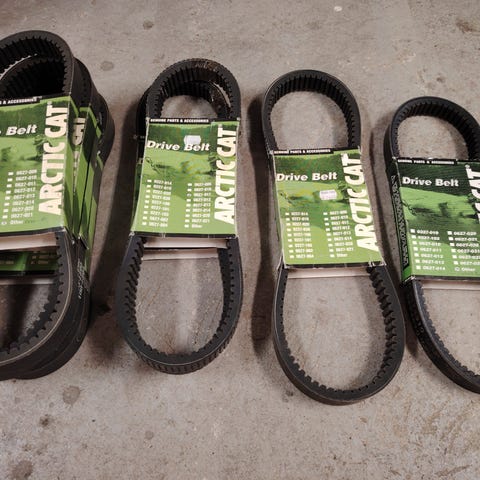 Kuvanmukaiset moottorikelkan käytetyt variaattorin hihnat. Lynx, Skii-Doo. Voin lähettää.