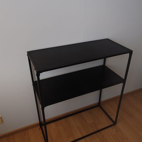 Myydään musta hyllykkö. Siisti kunto, jotakin pieniä kulumajälkiä voi olla.