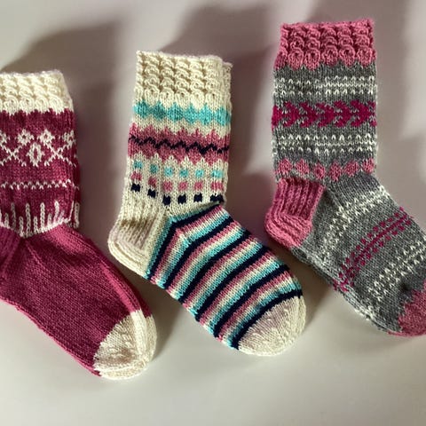 Käsin neulotut uudet villasukat, koko 39-40. 75% villaa, 25% polyesteriä. Voidaan pestä koneessa, 40 astetta.
