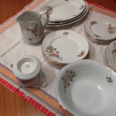 Arabian siistit ja ehjät HELI kahvikupit 40-50-luvulta jossa tanssi ja pullalautanen 15 euroa /kpl. Löytyy myös kuvassa olevia yksittäisiä kuppeja ja lautasia josta hinta sovitaan erikseen.