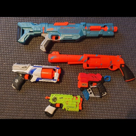 Nerf- ja x-shot-vaahtomuovipatruuna aseet