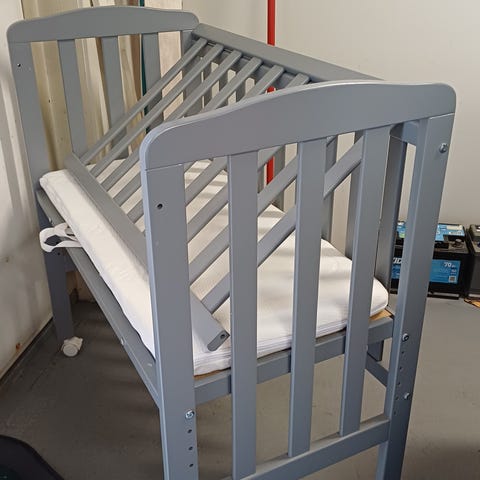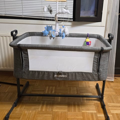 Tilattu uutena saksasta 2024 ja ollut käytössä alle 6kk. On todella kätevä, koska sängyn saa vanhempien sänkyyn kiinni ja sivun saa alas. Molempia päätyjä saa laskettua ylös/alas.