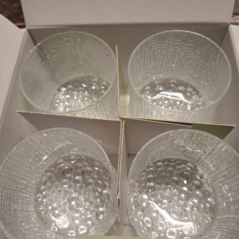 4 kpl paketissa olevia käyttämättömiä Iittala Ultima Thule on the rocks laseja.