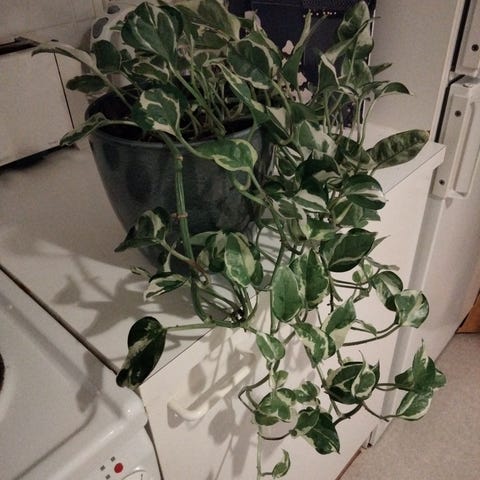 Myydään kultapalmu valkoisessa ruukussaan. Olisi varmaan hyvä vaihtaa umpiruukusta pois, mutta varovaisella kastelulla selvinnyt tässäkin.