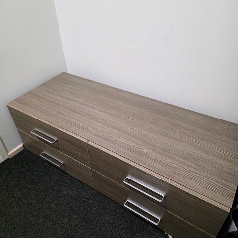 Oikein toimiva ja kiva kokonaisuus. Laatikot rullaa kuin rasvattu. Siisti käytetty kunto, pari isompaa lommoa yhdessä ovessa (kuvat).