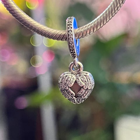 Harvinainen ja kaunis Pandoran riipushela. Hyvässä kunnossa, mutta hopea olisi hyvä puhdistaa tummentumista.