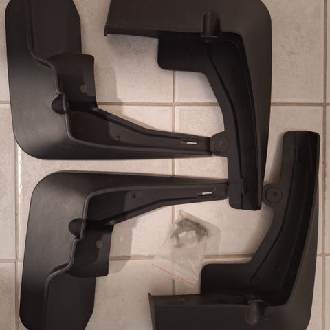 Käytetty Peugeot roiskeläppä. Korkeus 36 cm, leveys alhaalta 22 cm.