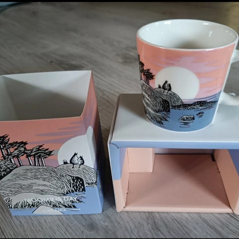 MYYDÄÄN tarrallinen Muumin päivä-muki 2018, hinta 85e.