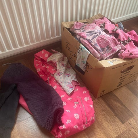 Iso tytön vaatepaketti 110/116/122 ja osassa pieni 128 (esim H&M). Eniten 110 ja 116 kokoa vastaava. Suurin osa tullut meille uutena. Kaikki vaatteet menee hyvin vielä seuraavalle. Mitään isompia tahroja en huomannut, jotain pientä toki saattaa löytyä. Osa vaatteista ollut käytössä pari kertaa, monta täysin käyttämättä eli käytännössä uusia ja osa käytetty enemmän.