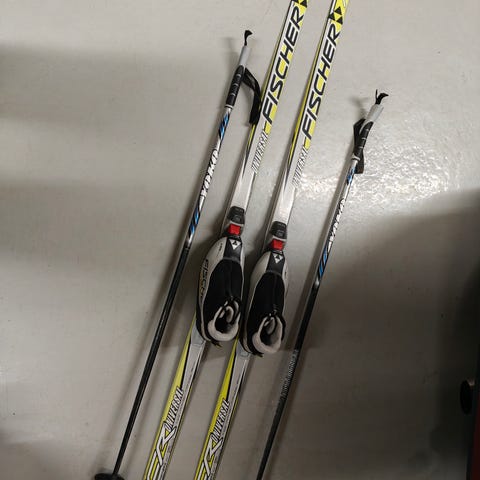 Sukset 140, monot kokoa 32. Hyvä kuntoiset hiihdetty yhden talven.