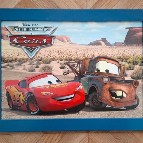 Erittäin hyväkuntoinen Salama McQueen tarhareppu (ei ollut käytössä). Kuva muuttuu reppua liikuteltaessa.