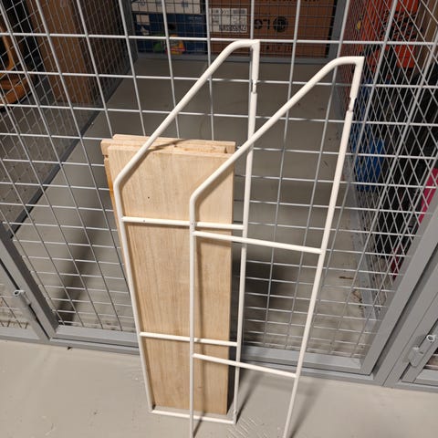 Hyväkuntoinen täyspuinen HJÄLMAREN-tikashylly. Ei mikään rimpula. Alun perin tarkoitettu kylpyhuoneeseen pyyhehyllyksi yms.