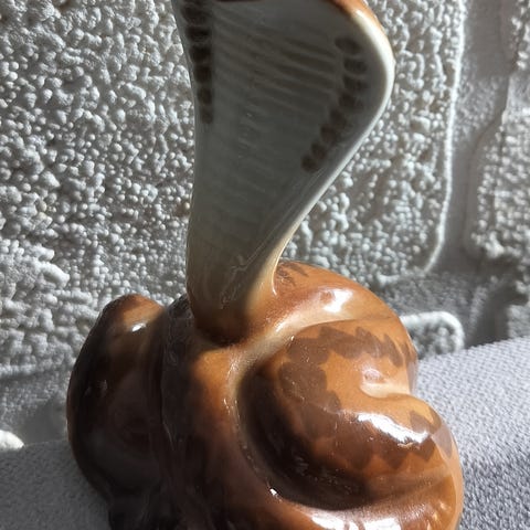 Myydään kuvien Lomonosov Kobra posliini figuuri. Erittäin hyväkuntoinen. Ei halkeamia, riksuja, lohkeamia, lasite rikkoja tai muutakaan vikaa. Pohjassa tehtaan leima. Myynnissä myös isompi kobra.
