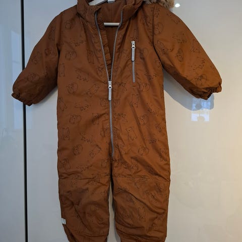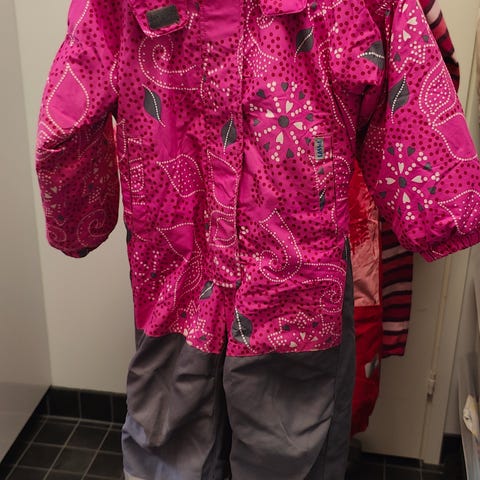 Vielä ehjä ja hyvä 98cm haalari seuraavaalle. Toki pehmentymää polvissa. Loistava haalari nyt ennen lumia ja tulevalle keväällekin. Nouto Ylämylly