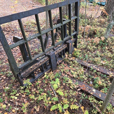 vila-volvo kiinnike taotut piikit pituus 1100 mm.vamius hydrauliselle sivusiirrolle.Nostetaan kyytiin.
