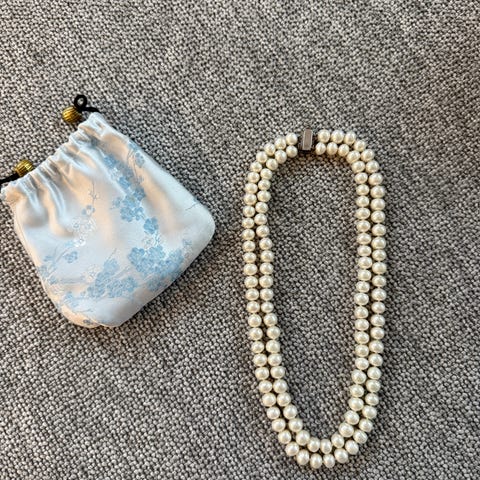 DPN.n aidot ja uudet helmet hopeisella lukolla. Kokonaispituus n.46cm