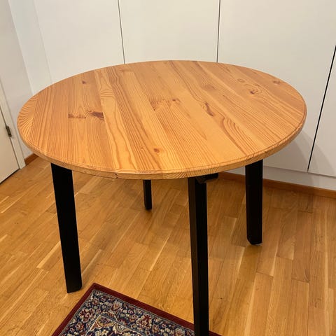 Itse spraymaalattu Ikean pyöreä DOCKSTA-pöytä. Kulumaa maalissa. Muuten hyvässä kunnossa.