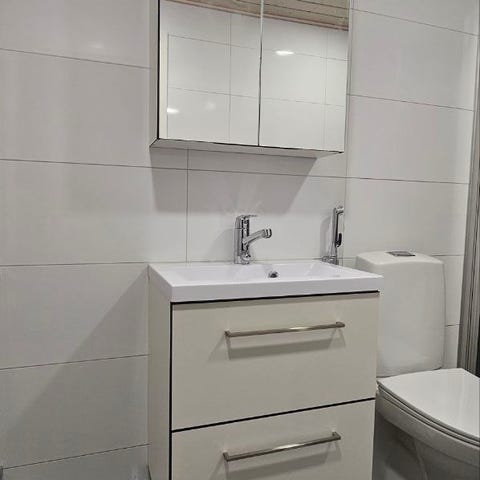 Myydään Ikea ÄNGSJÖN -kylpyhuonekalustekokonaisuus ja Ikea STORJORM peili.