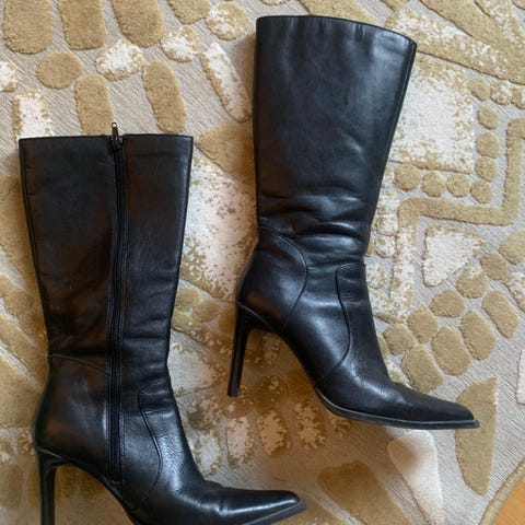 Vintage nahkasaappaat / ylipolven saappaat (ks varren mitta) koko 38. Saappaan varren yläosassa nyöritys. Pohjien, kantalappujen ja koko saappaiden kunto hyvä. Saappaissa todella lämmin karvavuori, erinomaiset talvikäyttöön. Merkki z-form. Saappaan varren mitta kannan yläosasta pohkeensuun yläosaan asti mitattuna 44cm. Varsi on myös mahdollista kääntää.