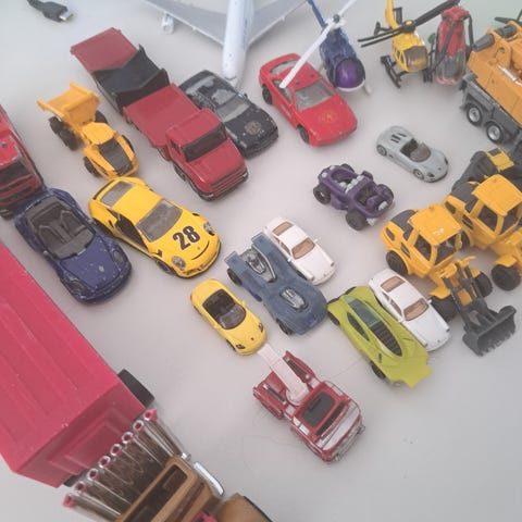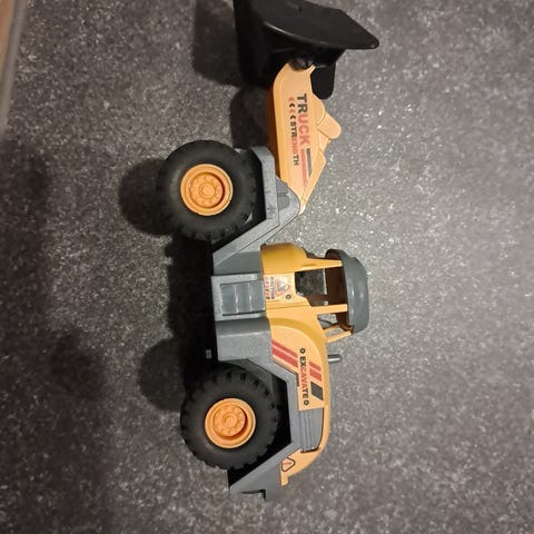 Kaksi työkonetta. Nämä vähän isompia kuin pikkuautot, mutta eivät isojen bruder koneiden kokoisia. Toisessa on vilkkuvat valot ja ääntä. Toisen patterit alkaa vähän loppua niin äänikin alkanut hiljentyä. Hinta yhteensä.