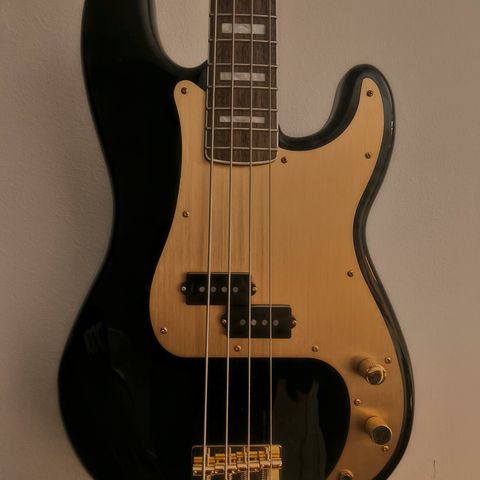 Hyvissä säädöissä ja kunnossa oleva basso valmiina seuraavalle soittajalle. Kevyt soittaa. Johto kaupan päälle.