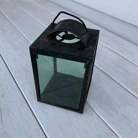 Lasitetulla parvekkeella vuosia säilytyskalusteena ollut rahi. Kestää istumista. Kulumaa ja haalistumaa on.