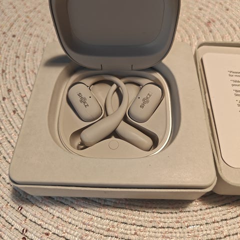 Aftershokz AEROPEX langattomat kuulokkeet. Mukana kantokotelo ja latausjohto. Kuulokkeet ovat mustat ja käyttävät luurankoluun välityksellä ääntä siirtävää teknologiaa. Sopivat urheiluun ja aktiiviseen käyttöön.
