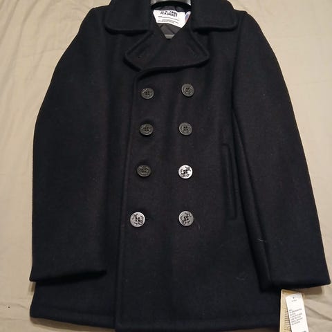 Myydään käyttämätön Schott Peacoat 740N takki. Koko 10? Virallisia mittoja en löytänyt mutta suuntaa antavat mitat viimeisessä kuvassa. https://www.schottnyc.com/products/boys-pea-coat.htm?catID=44