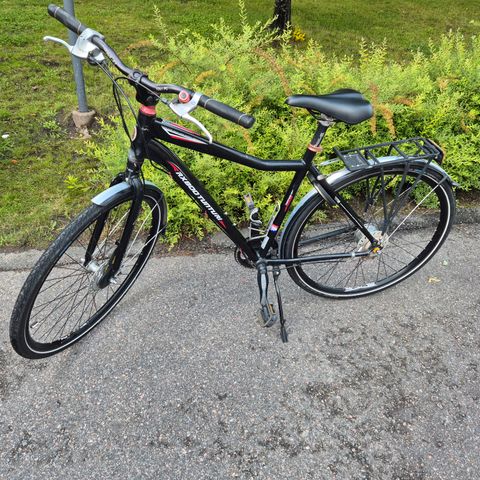 Kuin uusi naisten pyörä, Neste levyjarrut ja 27vaihteinen. Renkaat 28". Juhlavuoden malli, ei vikoja kaikki toimii täysin. Kiinteät etu ja taka valo.
