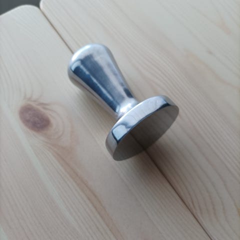 Kahvin litistin espresson käyttäjälle. Tai koristeeksi tai lahjaksi sellaiselle, jolla on jo kaikki. Hieman kolissut, mutta vallan mainio tamppaaja.