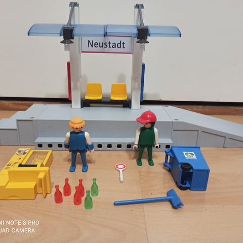 Veturi, jossa kaksi vaunua matkustajineen, sekä tavaroineen. Iso kasa rataosia!